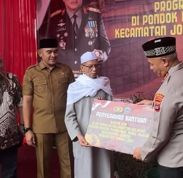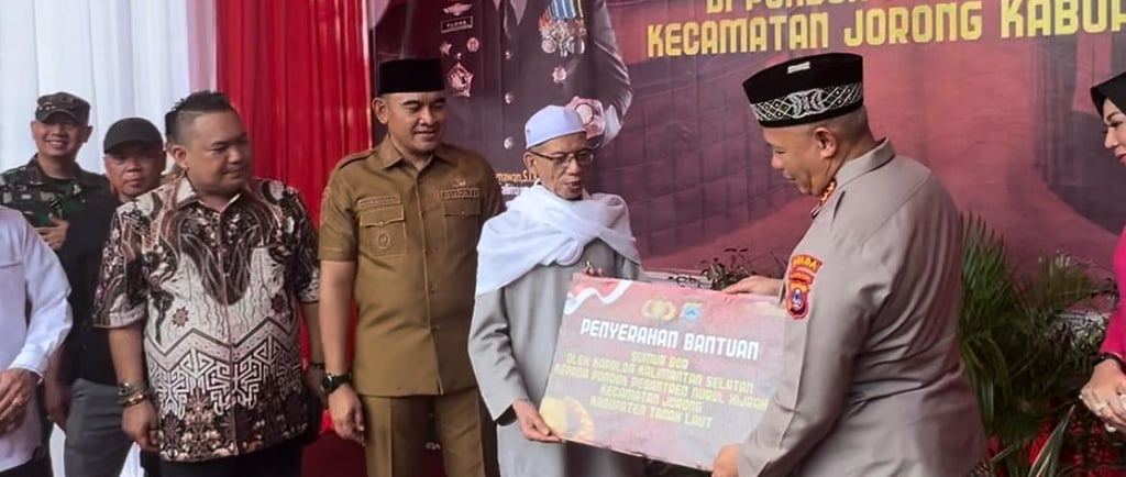 Bupati Tanah Laut (Tala), H Rahmat Trianto bersama Forum Koordinasi Pimpinan Daerah (Forkopimda) menyambut kedatangan Kapolda Kalimantan Selatan, Irjen Pol Rosyanto Yudha Hermawan beserta Ketua Bhayangkari Daerah Kalsel, Ny. Yennie Rosyanto Yudha di Pondok Pesantren (Ponpes) Nurul Hijrah, Desa Alur, Kecamatan Jorong, Selasa (27/5/2025). Kedatangan Kapolda dan rombongan disambut langsung oleh Bupati Tala bersama jajaran Forkopimda, termasuk Kapolres Tala AKBP Ricky Boy Siallagan, Dandim 1009/Tala Letkol Inf Indar Irawan, para Kapolsek, Camat Jorong, Ketua FKUB, Rektor ULM Banjarmasin, serta pengasuh Ponpes Nurul Hijrah, KH Mukri Yunus.