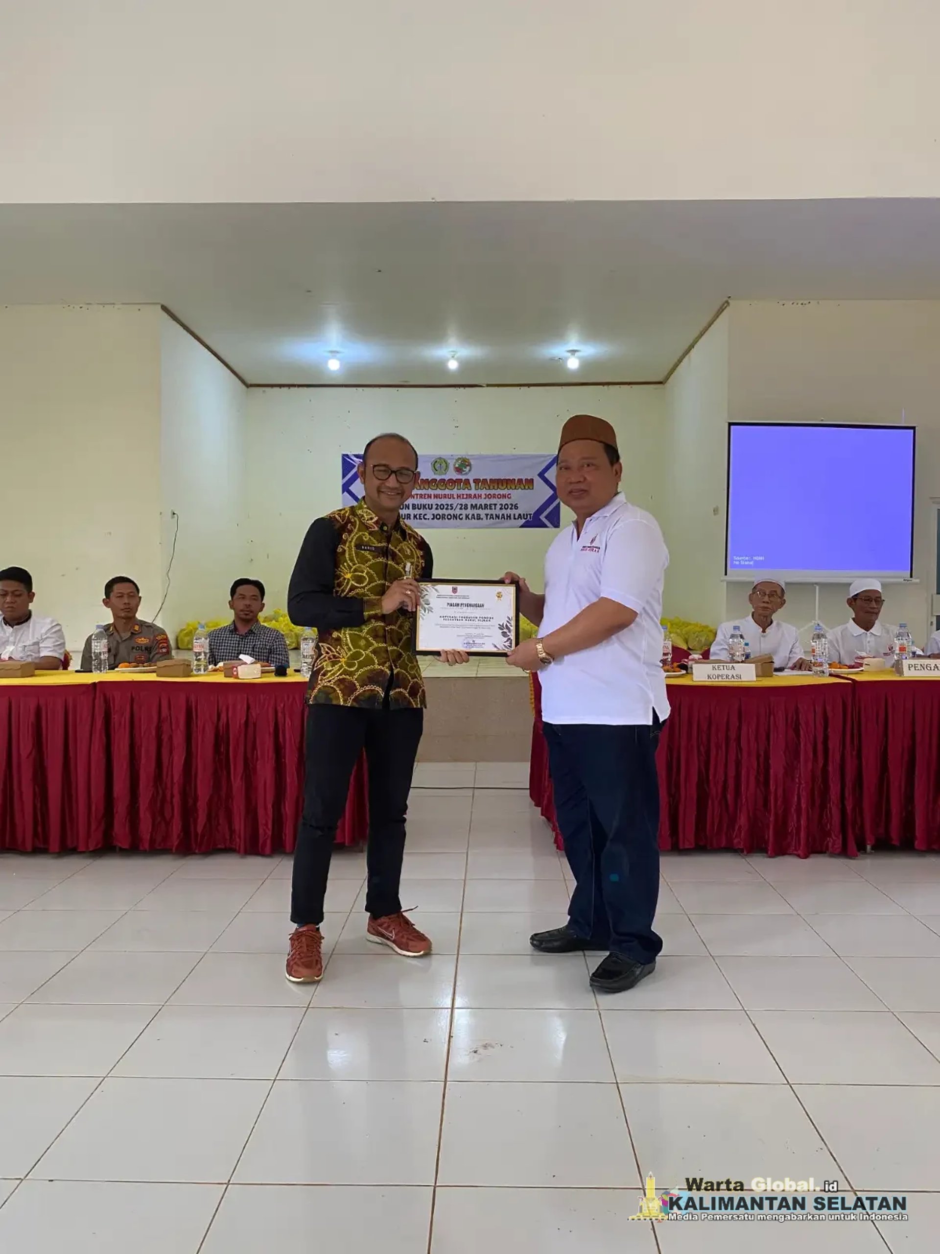 Kepala Dinas Koperasi dan UKM Provinsi Kalimantan Selatan membuka secara resmi Rapat Anggota Tahunan (RAT) Koperasi Pondok Pesantren Nurul Hijrah Tahun Buku 2025, di Gedung Aula Pondok Pesantren Nurul Hijrah Kecamatan Jorong Kabupaten Tanah Laut Propinsi Kalimantan Selatan, Sabtu (28/3/2026). Dalam sambutannya, Kepala Dinas Koperasi dan UKM Provinsi Kalimantan Selatan, yang di wakili Harisnor Pj Sekdis menyampaikan bahwa RAT merupakan forum tertinggi dalam tata kelola koperasi, yang bertujuan untuk memberikan gambaran secara rinci tentang pelaksanaan kegiatan setiap bidang, sekaligus pertanggungjawaban pengurus, agar para anggota dapat mengevaluasi dari hasil kerja, dan memberikan saran serta masukan. Kadis menambahkan, RAT ini juga merupakan bentuk nyata dalam pelaksanaan prinsip transparansi dan akuntabilitas, yang menjadi landasan penting dalam pengelolaan Koperasi.