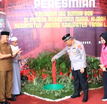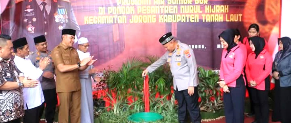 Kepala Krpolisian Daerah Kalimantan Selatan (Kapolda Kalsel), Irjen Pol Rosyanto Yudha Hermawan beserta Ketua Bhayangkari Daerah Kalsel,Yennie Rosyanto Yudha kunjungi Pondok Pesantren (Ponpes) Nurul Hijrah Desa Alur, Kecamatan Jorong, Selasa (27/5/2025). Kedatangan orang nomor satu di jajaran Polda Kalsel tersebut untuk peresmian bantuan sumur bor sedalam 98 meter dan bantuan pembuatan 20 kolam ikan gabus bioflok.